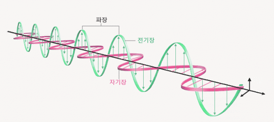빛은 전자기파라고 하며 전기장과 자기장이라고 하는 알 수 없는 두 녀석들이 서로 꼬아가면서 무한하게 직진하는 그런 녀석입니다.
