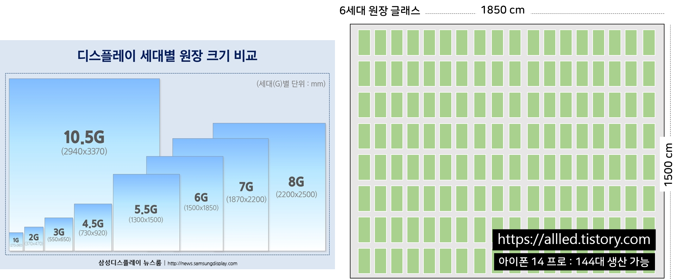 그러면 6세대 유리 원장을 스마트폰용으로 작게 나누어 팔면 유리 원장 당 2,016만 원의 수익을 얻을 수 있다는 단순 계산이 나옵니다. 물론 순수익은 아니고 판매 가격으로 보았을 때입니다.