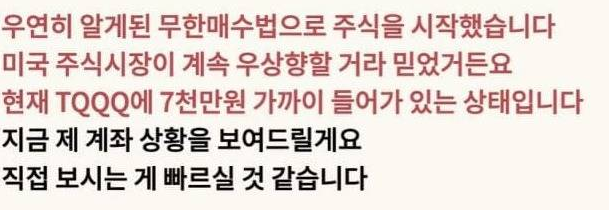 일반적인 상황에서도 멘탈을 유지하기 어려운 상황일 텐데, 암에 걸리신 상황에서 3배 레버리지 상품인 TQQQ라니요...
