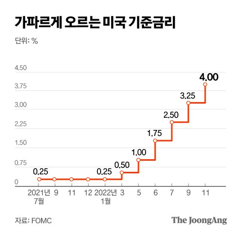 그러나 FED의 긴축정책으로 금리가 가파르게 오르자 채권금리가 오르면 채권 가격이 급락하게 되는 문제가 있는데 이 때문에 채권가격의 폭락으로 인해 미국채의 매도세가 이어지게 됩니다.