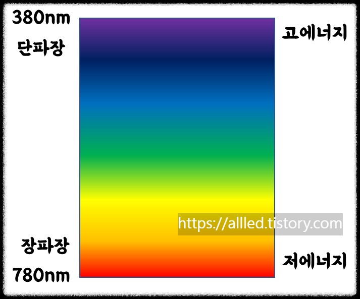 많은 분들이 잘 아시겠지만 빛은 적색, 녹색, 청색으로 이루어진 삼원색으로 모든 색을 만들어낼 수 있습니다. 이 삼원색은 무지개의 끝과 가운데에 위치한 색이라는 특징이 있습니다. 무지개 자체가 우리가 볼 수 있는 가시광(가능할 가, 볼 시, 빛 광, 즉 볼 수 있는 빛이라는 뜻)이 굴절률 차이 혹은 산란에 의해 분산된 색성분을 보는 것입니다.
