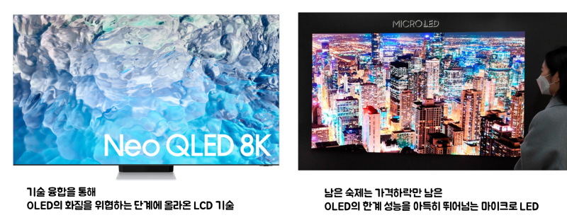 물론 지금은 자리를 잘 잡아가고 있고, 프리미엄 제품들에 적용되고 있어서 문제가 전혀 없어보이는 기술이지만 내막을 살펴보면 앞으로는 LCD의 지속된 혁신과 가격경쟁력에서 치이고 있고, 뒤로는 마이크로 LED와 QD-LED 같은 무기물기반의 디스플레이 기술들에 추격을 받고 있어서 OLED의 입지는 항상 위협을 받고 있습니다.