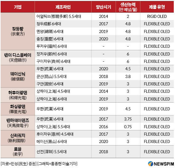 물론 아직 중국은 저가형 OLED 패널을 주로 생산하는데 반하여