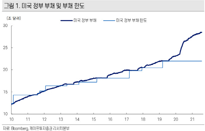 - 미국은 2021년 12월 부채한도를 31조 3810억달러로 증액한바 있으며, 당시에도 디폴트 우려가 있었음.
