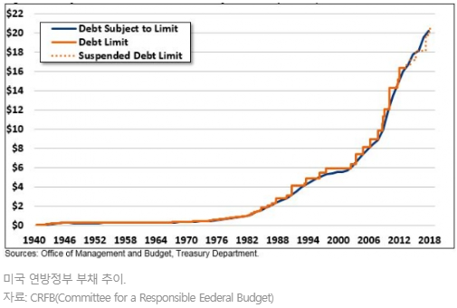 미국 부채한도 그래프에서 볼 수 있듯이 미국은 왜 한도를 만들어놨나 의심스러울 정도로